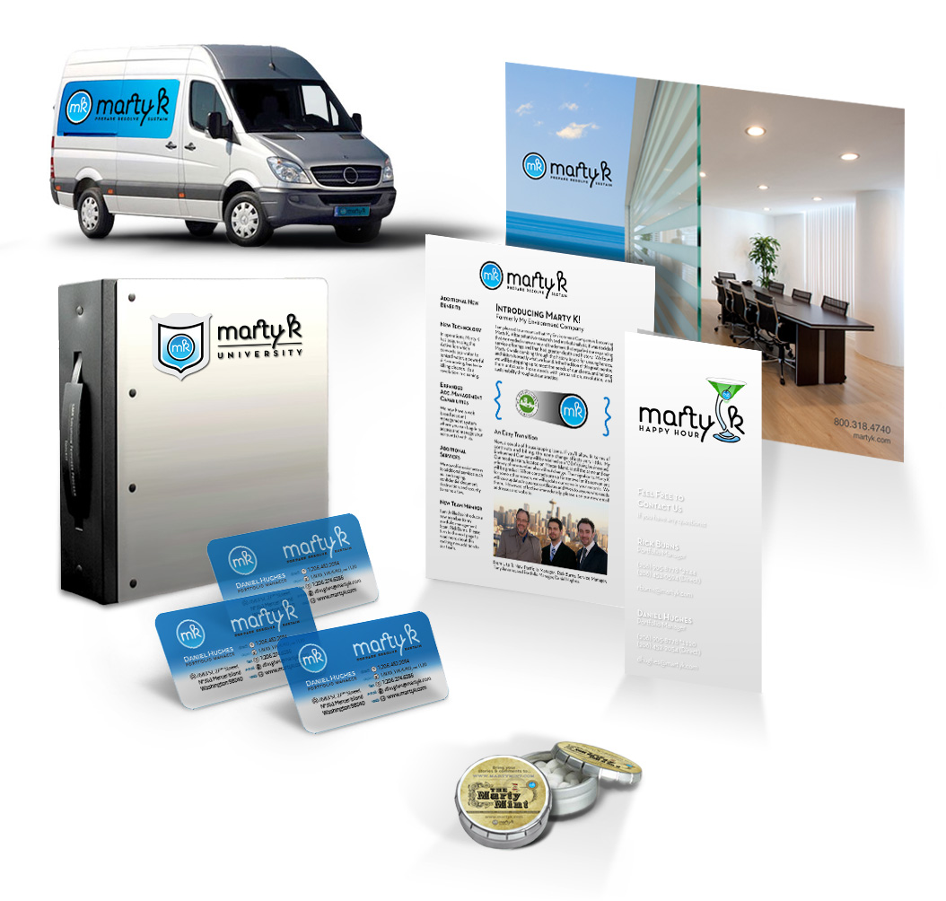 With accounts for clients such as FedEx, KCTS, and Shuttle Express, the commercial building and property maintainence provider MartyK asked Velocicolor for help with a complete rename and rebrand across their extended digital and physical collateral.